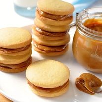 My fourth time making this recipe (they disappear so quickly!). For the filling I melt about 50g of white chocolate with a couple of tablespoons of dulce de leche in the microwave and pipe it onto the centre of the biscuit. This makes a much firmer filling when cooled, more like a caramel fudge.