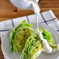 Iceberg lettuce is great for serving in wedges – and it’s quite elegant too, at least, I think so! There are a lot of recipes “out there” for iceberg wedges with blue cheese dressing, so I thought I’d do something a little different and make it with a feta dressing. It takes mere minutes to make, and it is darn tasty – creamy and slightly tangy with the saltiness coming from the feta. This dressing is perfect to use as a dip as well, just reduce the quantity of milk and it will be the perfect consistency for dipping in veggie sticks or corn chips.
