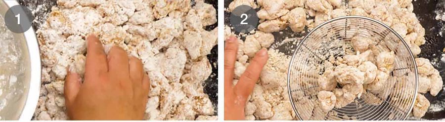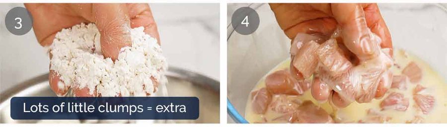 Or as an alternative, start coating them and store ready to fry. This also stops them swimming and gets you ahead of the game. (Probably a better alternative- that’s what KFC does, and every restaurant that makes Snitzels). It will still crisp up fine.