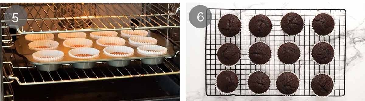 Fill cupcake liners – Fill the cupcake liners half full with batter. I find it easiest to do this with a jug because the batter is so thin. Don’t fill more than halfway, else the cupcakes will overflow and/or sink in the middle.